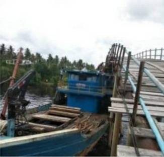 Ditabrak Kapal, Jembatan di Pelanggiran Inhil Hampir Ambruk