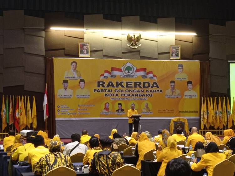 PEKANBARU, datariau.com - Dewan Pimpinan Daerah (DPD) Partai Golkar Kota Pekanbaru menggelar Rapat Kerja Daerah (Rakerda) yang dilaksanakan di Hotel Prime Park, Ahad (12/12/2021). Adapun tema yang diusung dalam rakerda ini adalah "Sukses Konsolidasi, Menang Pileg, Pilpres, dan Pilkada 2024".