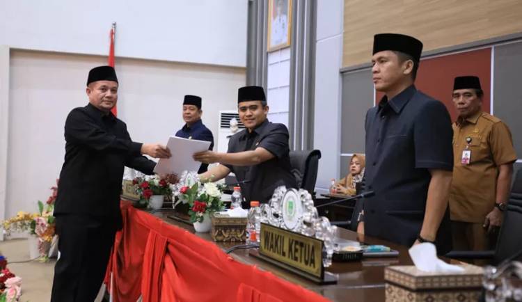 Penyerahan dokumen tersebut dilakukan oleh Wakil Ketua DPRD Provinsi Riau, Budiman Lubis, kepada Wakil Gubernur Riau, SF Hariyanto, dalam Rapat Paripurna DPRD Provinsi Riau, pada Kamis, (22/5/2025).