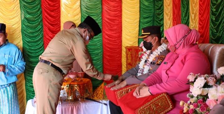 Sekertaris Daerah Kabupaten Siak, Drs H Arfan Usman MPd tepung tawar Kapolres Siak, AKBP Ronald Sumaja SIK.