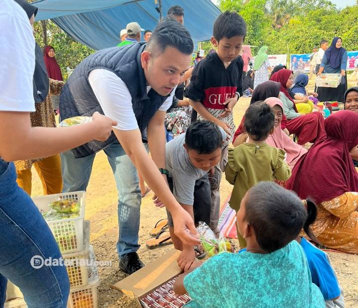 Dukung Program Prabowo-Gibran, Bakal Calon Bupati Kampar Ini Bagi-bagi Susu Gratis