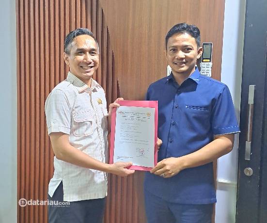 Ketua ESI Kota Pekanbaru, Tekad Indra Pradana Abidin ST MEng, menyerahkan surat dukungan kepada Achmad Faisal Reza, Senin (20/4/2026).
