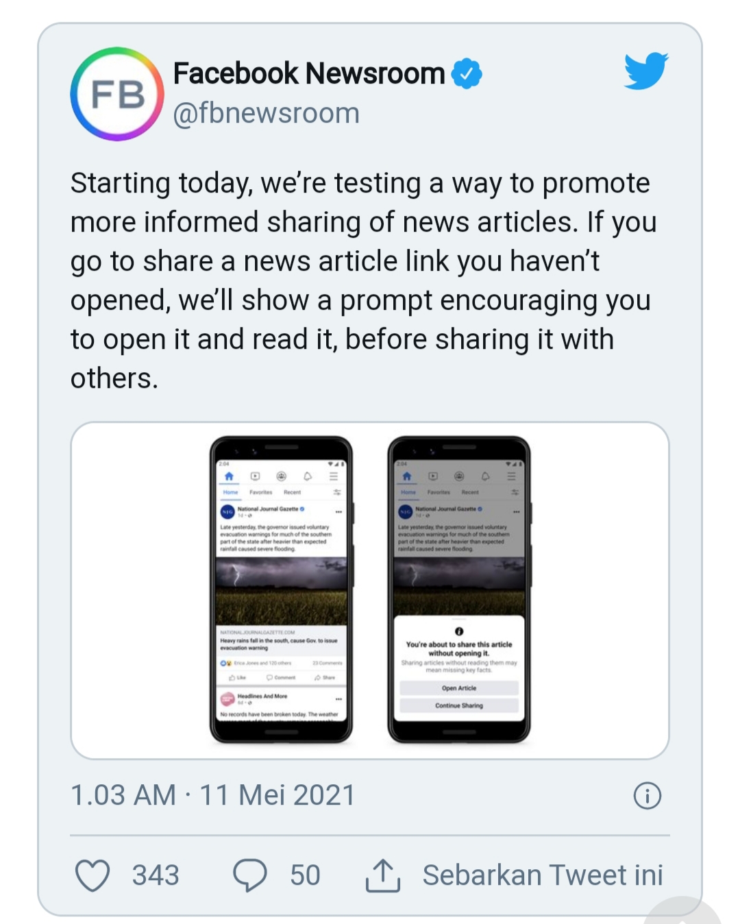 Facebook Uji Fitur Baca Dulu Sebelum Posting Ulang, Begini Cara Kerjanya