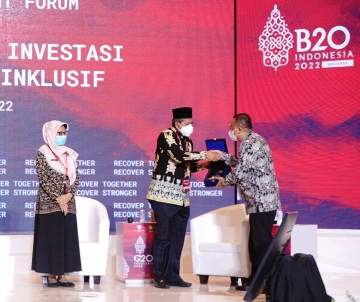 Investasi/Badan Koordinasi Penanaman Modal (BKPM) berkolaborasi dengan pemerintah Kota Surakarta bersama Kamar Dagang dan Industri Indonesia (KADIN Indonesia) menyelenggarakan Investment Forum Internasional merupakan salah satu rangkaian kegiatan Road to G20 Indonesia tahun 2022 dengan mengusung tema ?Mendorong Percepatan Investasi Berkelanjutan dan Inklusif?.