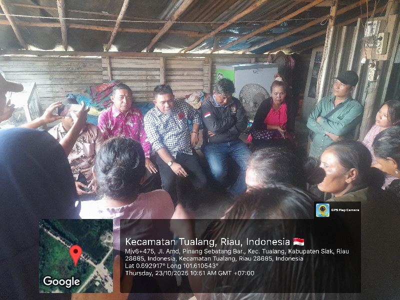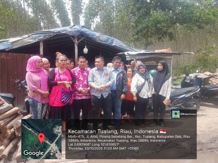 Fraksi PDI Perjuangan Marudut Pakpahan SH MH di dampingi Camat Tualang Mursal SSos dan perwakilan PT IKPP Perawang Zulfikar.