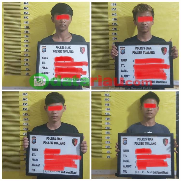"Dimana para diduga pelaku ini berhasil ditangkap di rumah pelaku oleh tim gabungan yang berhasil mengamankan sebanyak 4 orang diduga pelaku, masing-masing berinisial MF (17), RA (17), YP (17) dan Z alias B (17)," terang Kapolsek Tualang.