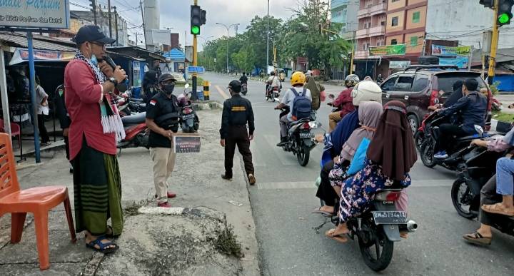 Tualang Lintas Organisasi Peduli Palestina di simpang 4 traffic light KPR I Perawang.