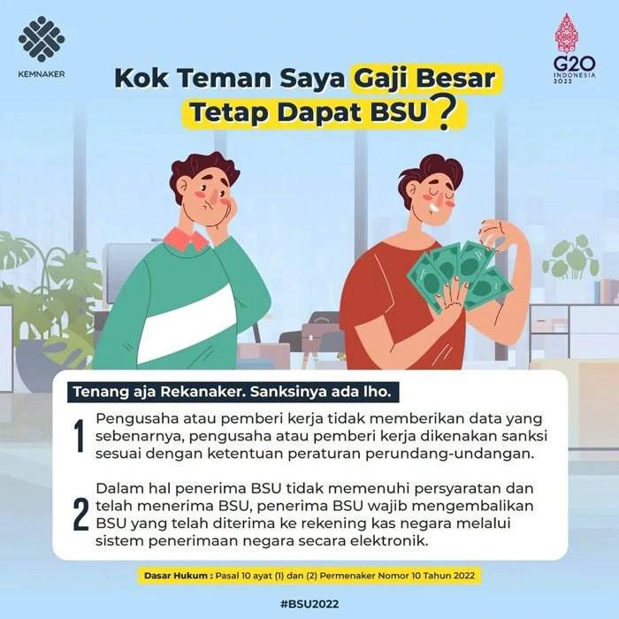 Pekerja wajib kembalikan BSU Rp600 ribu bila tidak sesuai ketentuan. /Instagram/@kemnaker.