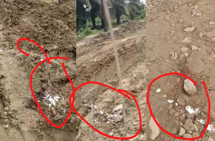 INHU, datariau.com - Masyarakat di Kecamatan Batang Cenaku Kabupaten Indragiri hulu (Inhu)-Riau, dihebohkan dengan penemuan pupuk jenis urea dan garam di tiga titik Jalan lintas selatan (Jalinsel) penghubung beberapa desa di Kecamatan Batang Cenaku Senin (13/2/2023). Kondisi tiga titik jalan tersebut tidak kunjung keras, meski sudah berulang dilakukan penimbunan batu dan tanah pengerasan.
