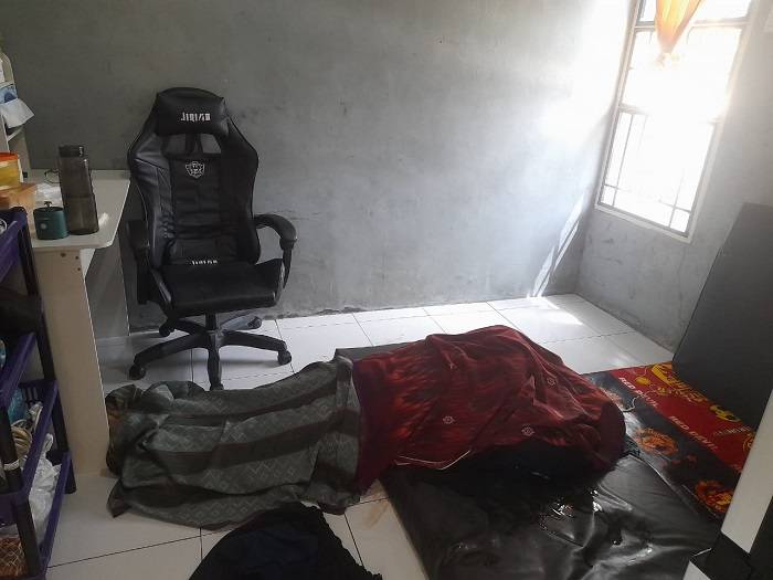 Kondisi jasad guru yang ditemukan membusuk di rumahnya.