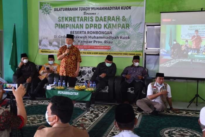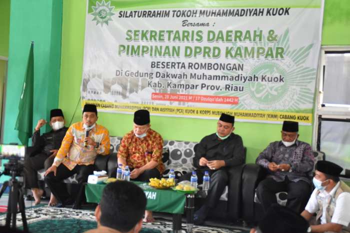 KUOK, datariau.com - Masyarakat Kecamatan Kuok yang tergabung dalam pengurus Muhammadiyah menggelar silaturrahmi tokoh Muhammadiyah Kuok bersama Sekretaris Daerah dan Pimpinan DPRD Kampar beserta rombongan yang dilaksanakan di gedung dakwah Muhammadiyah Kuok, Senin (28/6/2021).