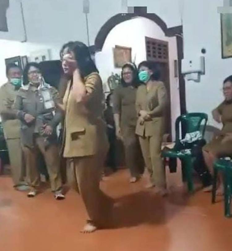 Dilihat detikcom, Kamis (13/1/2022), di dalam video terlihat seorang wanita menggunakan seragam PNS berjoget di sebuah ruangan. Wanita itu dikelilingi oleh rekan-rekannya yang juga menggunakan seragam PNS.