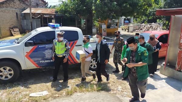 BAGANBATU, datariau.com - Kepolisian Sektor Polsek Bagan Sinembah Bersama Gerakan Pemuda (GP) Ansor Kecamatan Bagan Sinembah laksanakan pendamping dalam rangka menyerahkan dan menyalurkan bantuan PPKM Polres Rokan Hilir terhadap warga positif terpapar Covid-19 dan terdampak Covid-19, Rabu (29/7/2021).