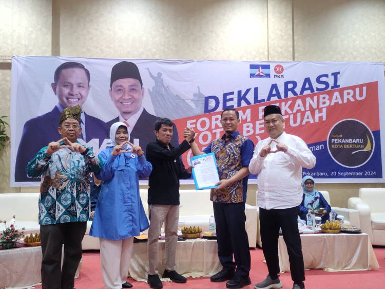 PEKANBARU, datariau.com - Bakal Calon Walikota Pekanbaru Agung Nugroho menghadiri deklarasi dukungan yang digelar oleh Forum Pekanbaru Kota Bertuah (FPKB) di Hotel Resty Menara, Jum'at (20/9/2024).