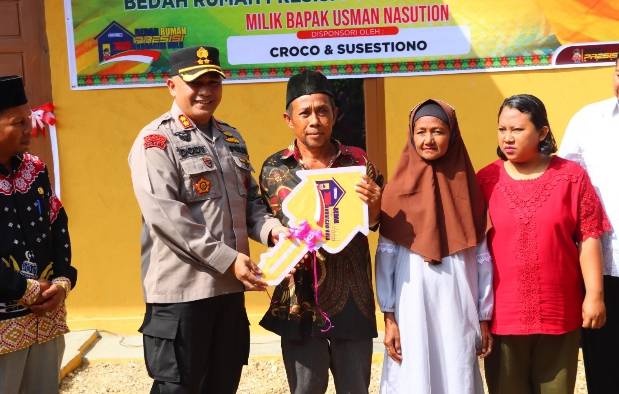 "Mudah-mudahan rumah ini bermanfaat bagi keluarga pak Usman Nasution, semoga menjadi barokah dan nyaman ditempati, tolong jaga serta rawat rumah ini dengan baik agar awet," ucap Kapolres mengakhiri sambutannya, dilanjutkan dengan pemotongan pita dan penyerahan kunci rumah.