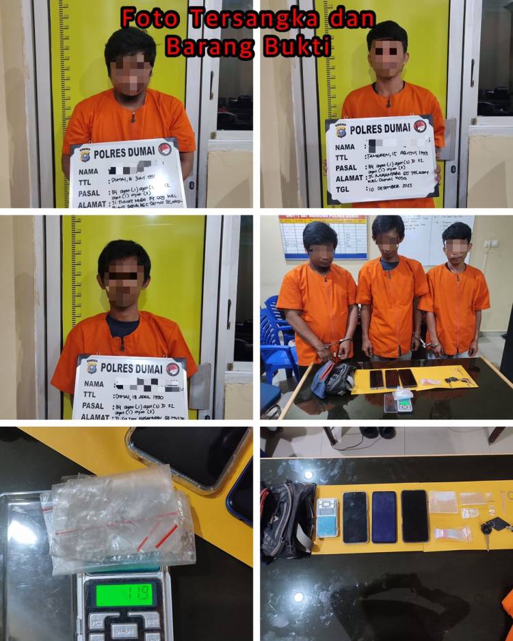 Hasil Pengembangan, Satres Narkoba Polres Dumai Bekuk Tiga Tersangka Penyalahguna Narkoba