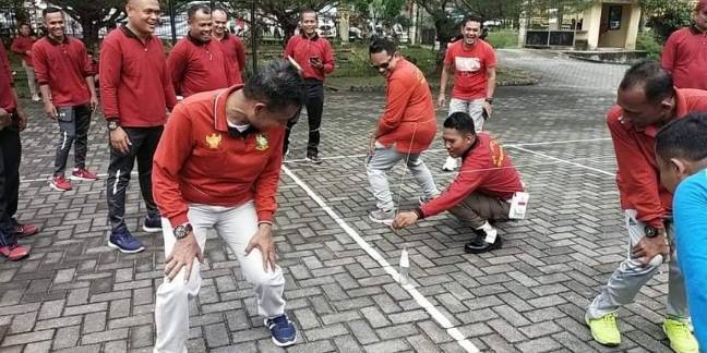 Satpol PP Kampar dan Dharma Wanita gelar lomba permainan rakyat di Mako Satpol PP Kampar, Rabu (21/8/2024).