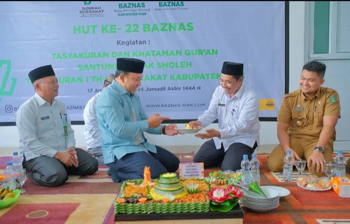 Wakil Bupati Siak H Husni Merza BBA MM dan Ketua Baznas Siak Samparis Bin Tatan pada HUT ke-22 Baznas di Kabupaten Siak.