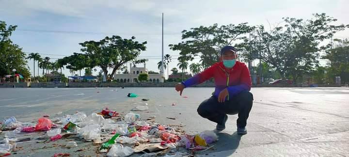 SIAK, datariau.com - Melalui postingan akun media sosial Facebook Husni Merza-Fanspage, memposting status dengan emot merasa sedih atas sampah yang berserakan di lapangan Siak Bermadah depan Istana Siak kemaren.
