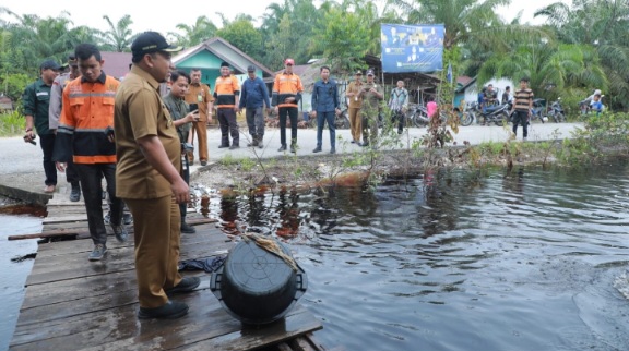 Wakil Bupati Siak H Husni Merza BBA MM tinjau banjir di Kecamatan Sabak Auh.
