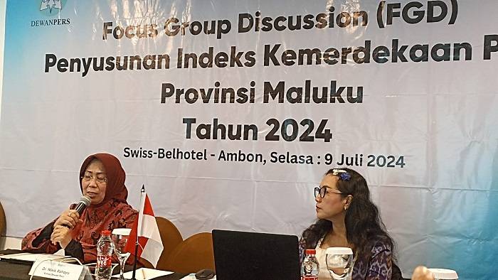 Hal ini dikatakan Ketua Dewan pers Ninik Rahayu dalam kegiatan Focus Discussion Grup (FGD) Penyusunan Indeks Kemerdekaan Pers (AIPK) Provinsi Maluku Tahun 2024, di SwissBell Hotel, Selasa (9/7/2024).