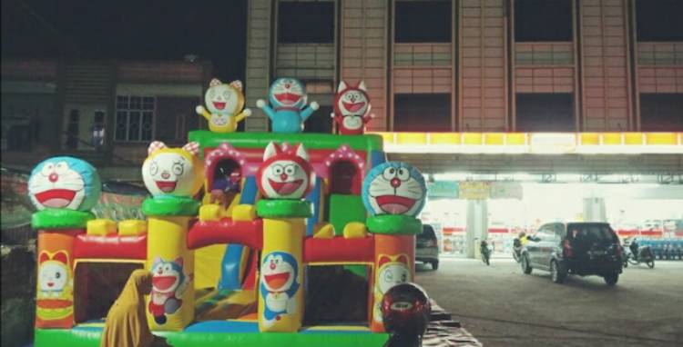 DATARIAU.COM - Di pinggir jalan Lintas Petapahan Garuda Sakti, tepatnya di depan SPBU Pertamina, tampak jajaran ruko dengan lahan kosong yang luas. Lahan tersebut kemudian ?disulap? pada malam hari menjadi tempat lagi pedagang kaki lima untuk menjajakan jualannya. Satu hal yang berbeda adalah keberadan ?Istana Wahana Mainan Anak? yang ricuh dengan lagu dan gelak tawa anak-anak.