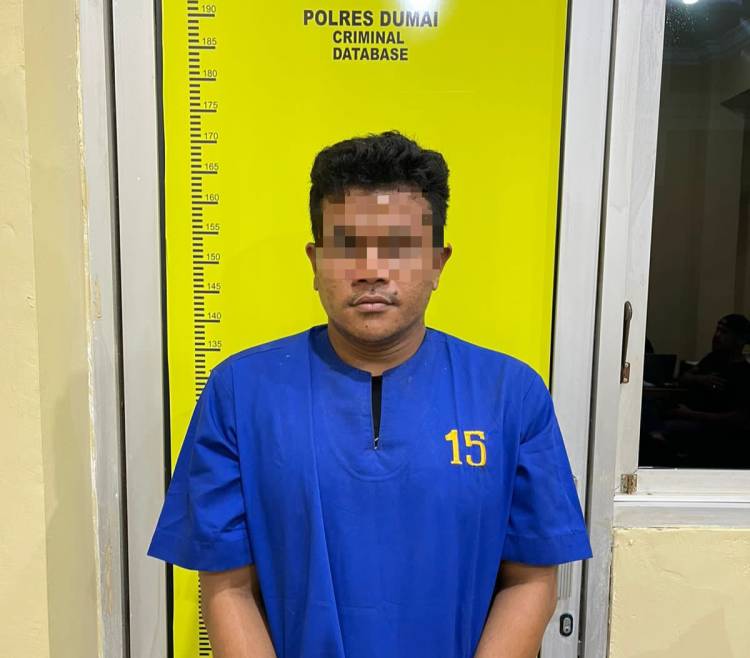 Foto : Tersangka ES Alias Putra Saat Diamankan di Mapolres Dumai. (ist)