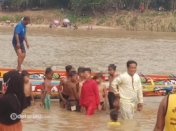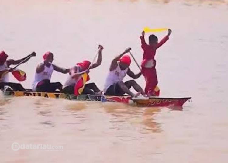 Ilustrasi bocah togak luan (penari/juru semangat) di atas jalur (sampan).