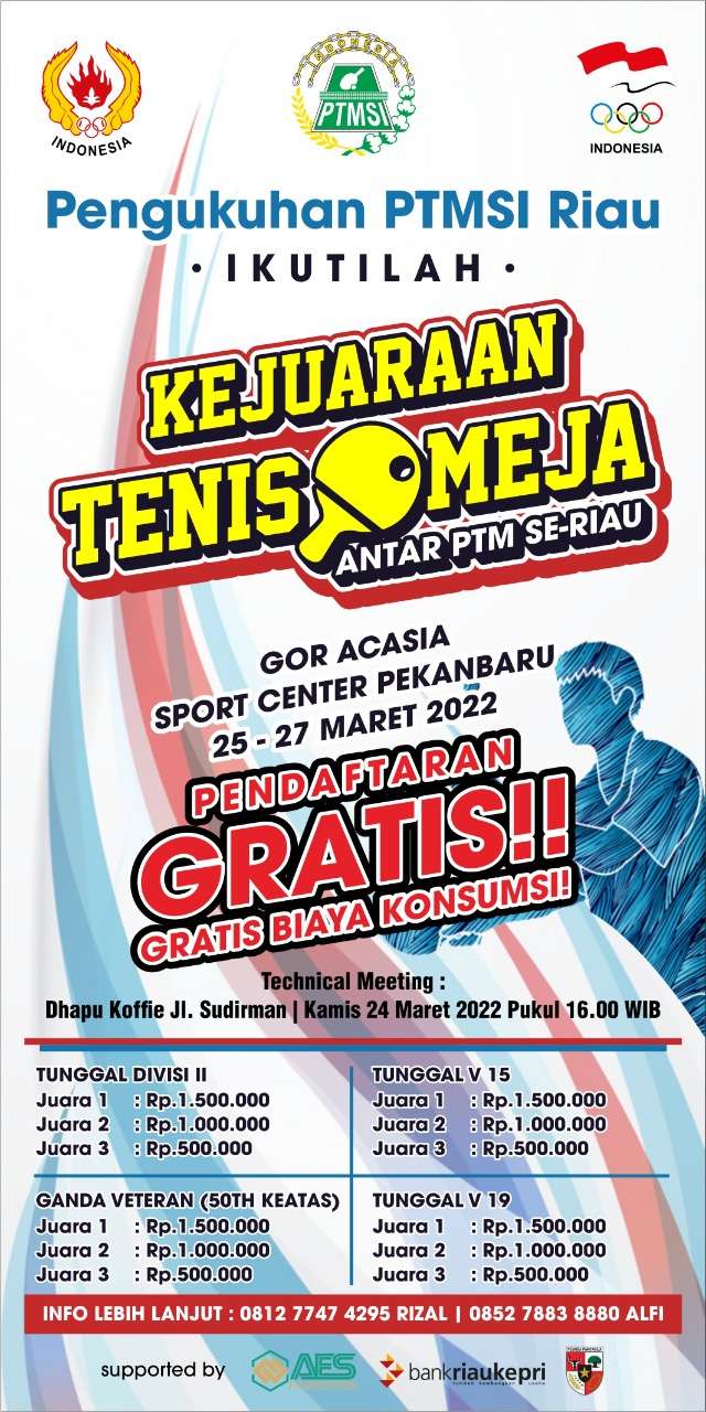 Jelang Pengukuhan, Pengprov PTMSI Riau Gelar Kejuaraan Tenis Meja PTM Se-Riau