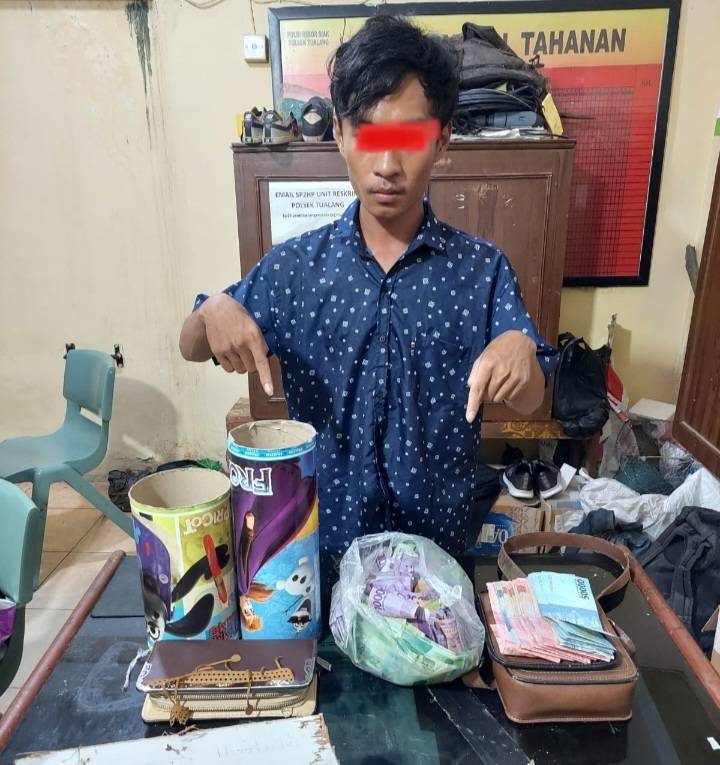 Dikatakan Kompol Arry, untuk barang bukti sendiri yang berhasil diamankan tim Opsnal Unit Reskrim Polsek Tualang berupa uang tunai sebesar Rp14.880.000, tas sandang warna coklat, dompet tangan, dua buah celengan, pecahan triplek dan kantong plastik warna putih.