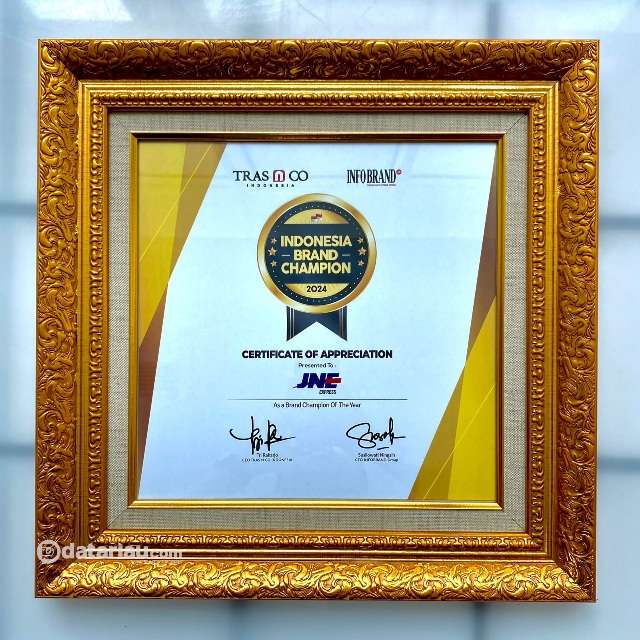 DATARIAU.COM - JNE mengawali tahun 2024 dengan menorehkan prestasi. Kali ini JNE meraih dua penghargaan sekaligus yaitu Indonesia Brand Champion 2024 dan Platinum Award Top Digital PR Award 2019 - 2023 kategori Jasa Pengiriman.