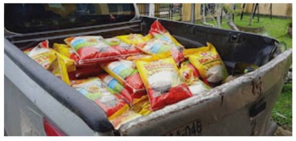 Mobil muatan beras bantuan PT Arara Abadi.