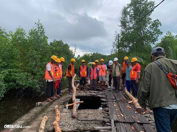Kadis PUTR Inhil Turun Awasi Pekerjaan Perbaikan Jembatan Rusak di Desa Igal yang Sempat Viral