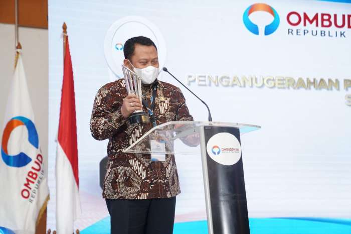 Penghargaan tersebut langsung diterima Bupati Kampar Catur Sugeng Susanto dari Presiden RI Joko Widodo melalui Ketua Ombudsman RI DR Mukhamad Najih SH MHum di Kantor Ombudsman Jakarta, Rabu (29/12/2021).