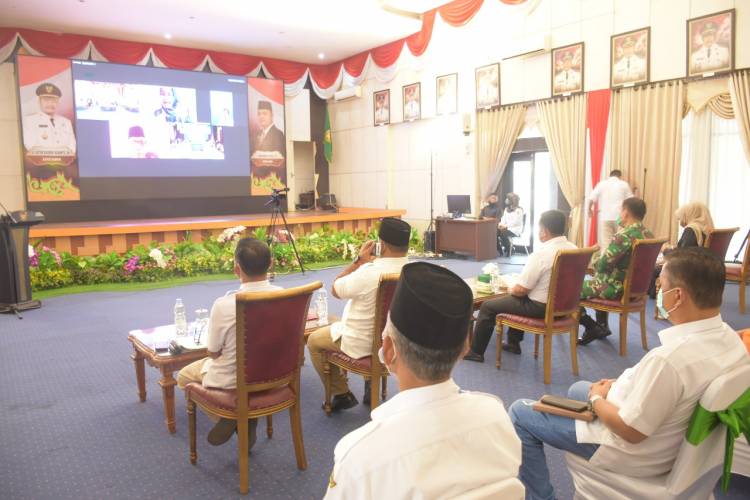 BANGKINANG KOTA, datariau.com - Bersama Tim Kementerian Pemberdayaan Perempuan dan Perlindungan Anak Republik Indonesia secara virtual, Bupati Kampar H Catur Sugeng Susanto SH MH membuka penilaian verifikasi lapangan hybrid Kabupaten Layak Anak (KLA) tahun 2021.