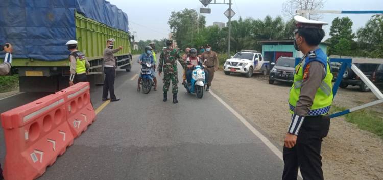 Kanit Lantas Polsek Bagan Sinembah Lakukan Penyekatan PPKM Level 3, Puluhan Kendaraan Diputar Balik