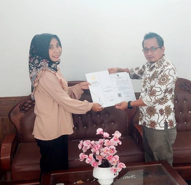 Ketua PKWACI Zulfan Effendi saat menerima SK Kemenkum HAM RI dari Notaris Dony Kartien SH. MKn melalui anggotanya, Evitasari.