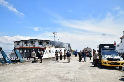 BENGKALIS, datariau.com - Kapal Motor Penyebrangan (KMP) Permata Lestari I, terbakar di Pelabuhan BUMD, Jalan Panglima Minal, Gg Syahbandar II, Desa Air Putih Kecamatan Bengkalis, Kamis, 23 Mei 2024.