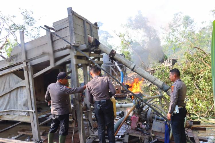 Selain musnahkan 66 unit bocai, diamankan juga 4 unit sepeda motor yang digunakan penambang sarta peralatan untuk membuat bocai atau rakit, serta barang lainnya sebagai bukti tindak pidana penambangan liar.
