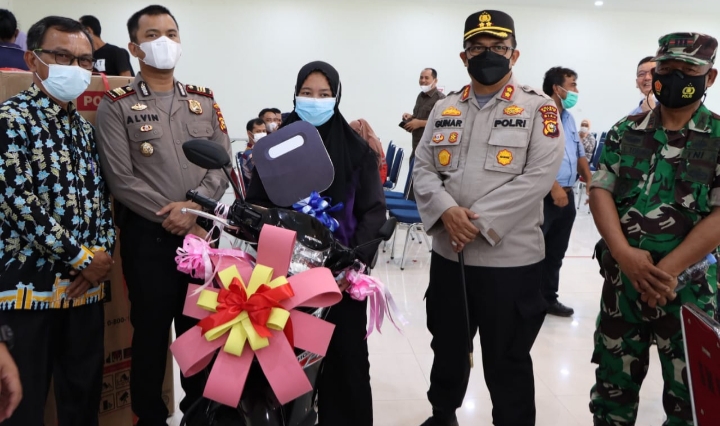 "Bagi yang belum mendapatkan hadiah jangan berkecil hati masih ada gelombang kedua pengundian door prize pekan vaksinasi yang juga hadiah utamanya 1 unit sepeda motor," jelas AKBP Gunar.