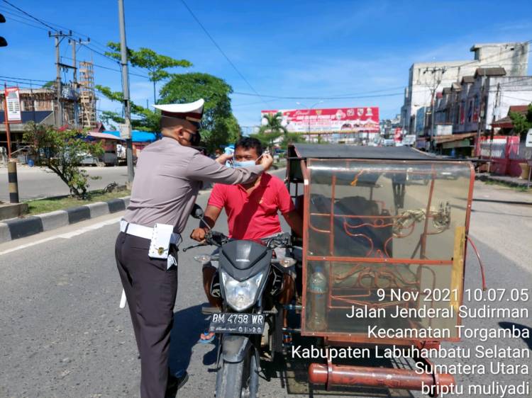 Kapolsek Bagan Sinembah Bagi Masker Gratis dan Sosialisasi Prokes