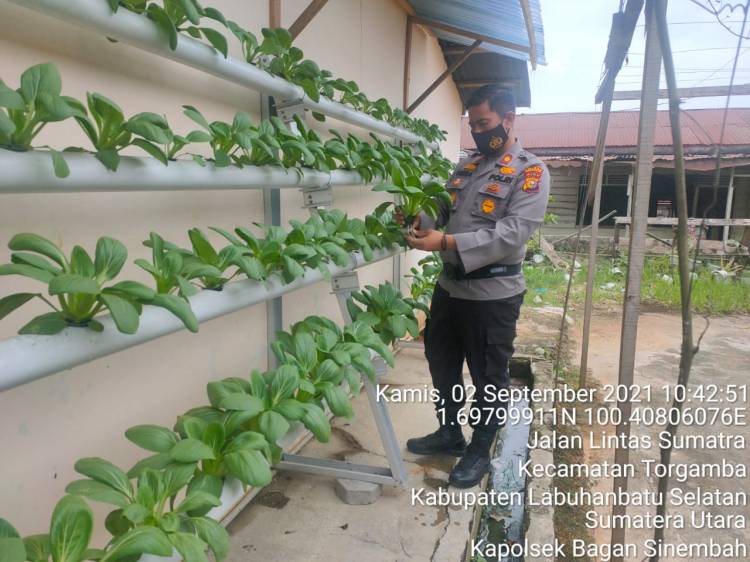 Menurut Kapolsek, masyarakat Bagan Sinembah bisa mencontohkan seperti ini, manfaatkan perkarangan rumah untuk bertanam sayur.