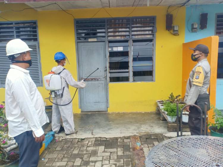 Kapolsek Semprot Disinfektan di Rumah yang Terdampak Covid -19 di Balai Jaya
