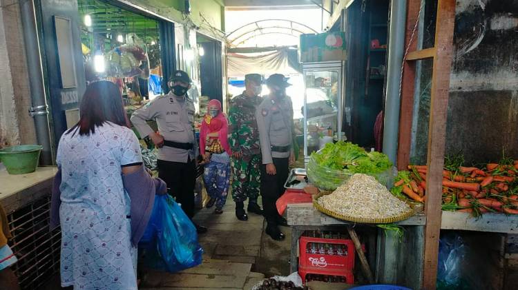 Kapolsek Sosialisasi Adapatasi Kebiasaan Baru dan Penertiban Keramaian Bagi Pengujung Pasar