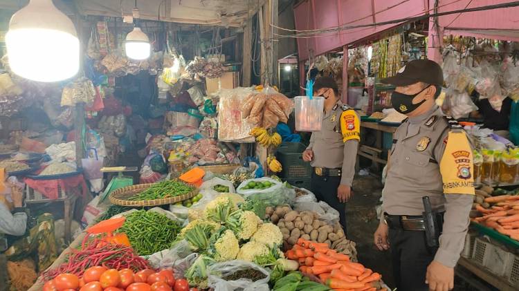 Kapolsek Sosialisasi Prokes 5 M Kepada Pedagang dan Pembeli di Pasar Tradisional