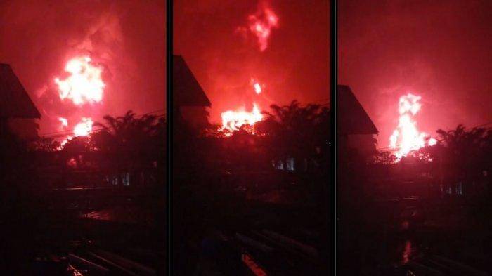 Tangkapan layar video amatir rekaman warga Cilacap saat terjadi kebakaran di Kilang Minyak Pertamina Cilacap.