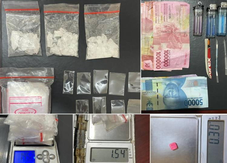 Kemudian petugas menemukan kotak warna ungu di dalam lemari pakaian yang berisikan 1 plastik bersikan kumpulan plastik kosong dan 3 buah mancis berbagai warna, 2 buah pipet, 1 kertas warna merah yang diruncingkan ujungnya, dan uang sejumlah Rp 1.140.000 yang menurut keterangan terlapor merupakan uang hasil penjualan sabu.