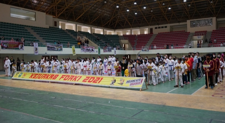 Pembukaan Kejurcab Forki di GOR Tualang oleh Sekertaris Daerah Kabupaten Siak Drs H Arfan Usman MPd.