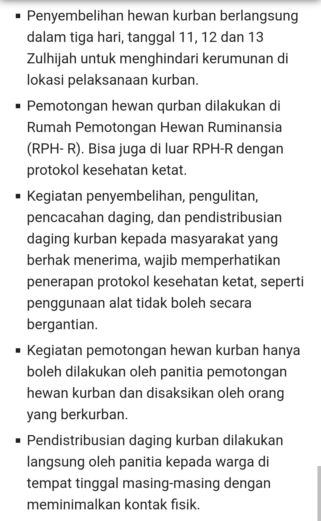Sementara itu, pelaksanaan pemotongan hewan kurban juga dituntut memperhatikan poin-poin ini;