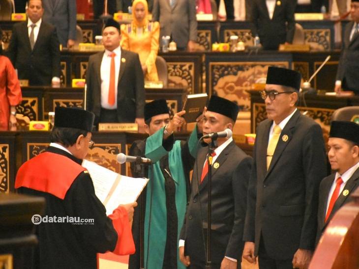 Rapat Paripurna Istimewa DPRD Provinsi Riau dalam rangka pengambilan sumpah janji pimpinan DPRD Provinsi Riau beserta wakil yang baru, Kamis (24/10/2024).